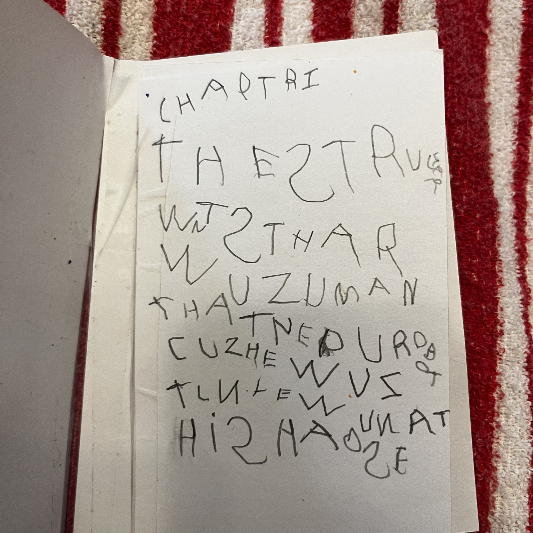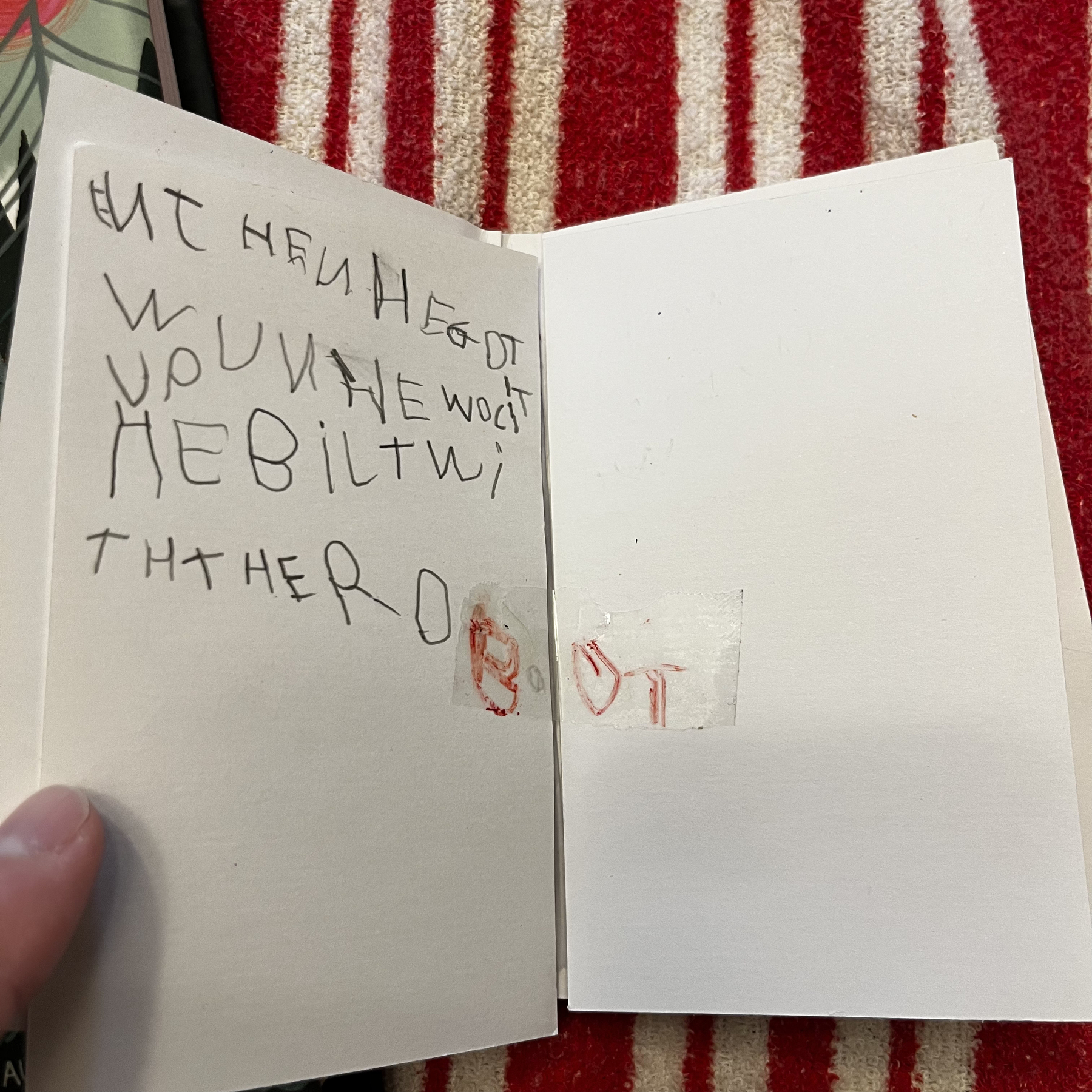 The boy decided that The Wild Robot series needed a fourth installment, so he wrote his own book: “The Wild Robot Bilds” (unedited first draft)